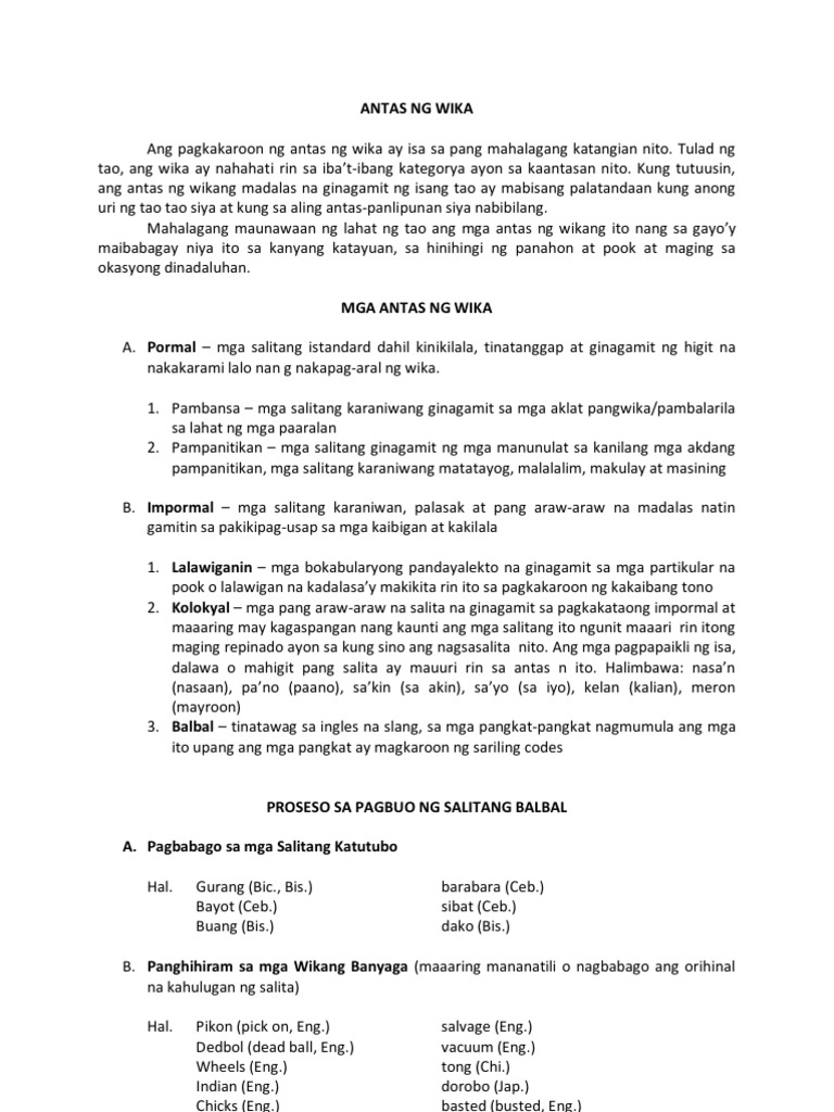 Antas Ng Wika Ang Pagkakaroon Ng Antas Ng Wika Ay Isa Sa Pang Mahalagang Katangian Nito