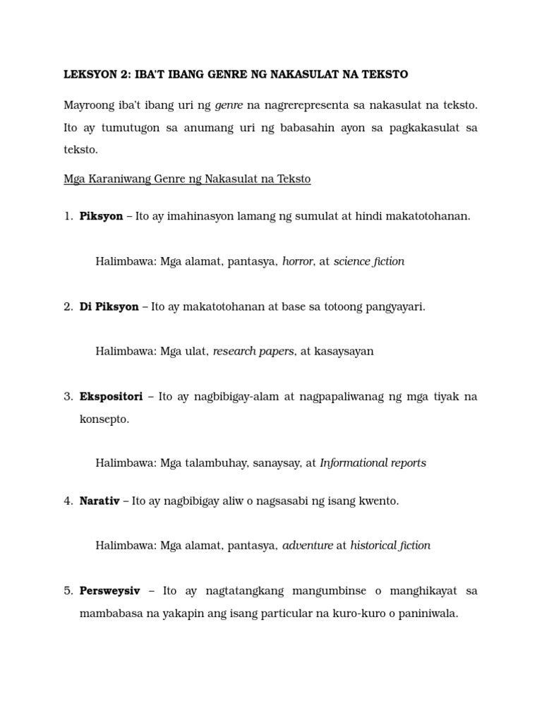 Learn vocabulary terms and more with flashcards games and other study tools. 21022018 Ilan sa mga Uri ng Di-Piksyon Artikulo Balita Posisyong Papel Talambuhay Recipe Mga Halimbawa ng Di Piksyon Ang nasa ibaba ay ilan lamang sa halimbawa ng di piksyon sa literatura Almanac Kasaysayan ng Pilipinas Diksyonaryo Talambuhay ni Dr. 24042020 Ilan sa mga Uri ng Di-Piksyon -Artkulo -Balita -Posisyong Papel -Talambuhay -Recipe Mga Halimbawa ng Di Piksyon Ang nasa ibaba ay ilan lamang sa halimbawa ng di piksyon sa literatura -Almanac -Kasaysayan ng Pilipinas -Diksyonaryo -Talambuhay ni Dr.