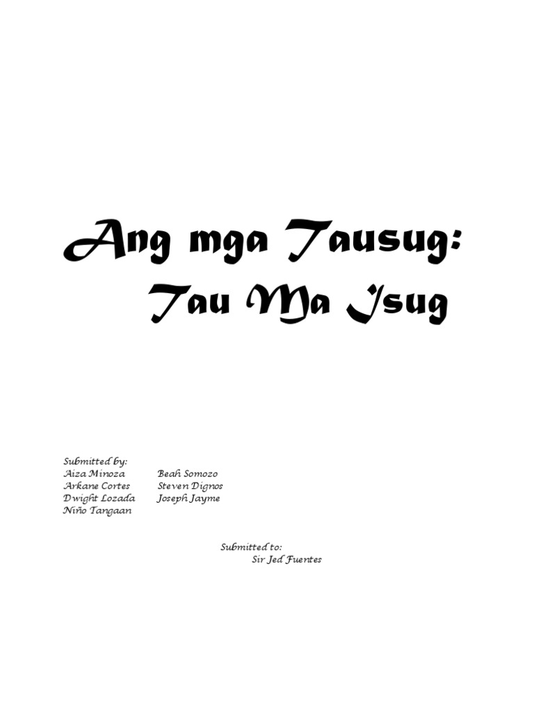 Ang mga tausug o ang mga suluk ay isang grupo ng mga ethnikong pilipino. 10 points Halimbawa ng salitang tausug Ask for details. Halimbawa ng salitang tausug.